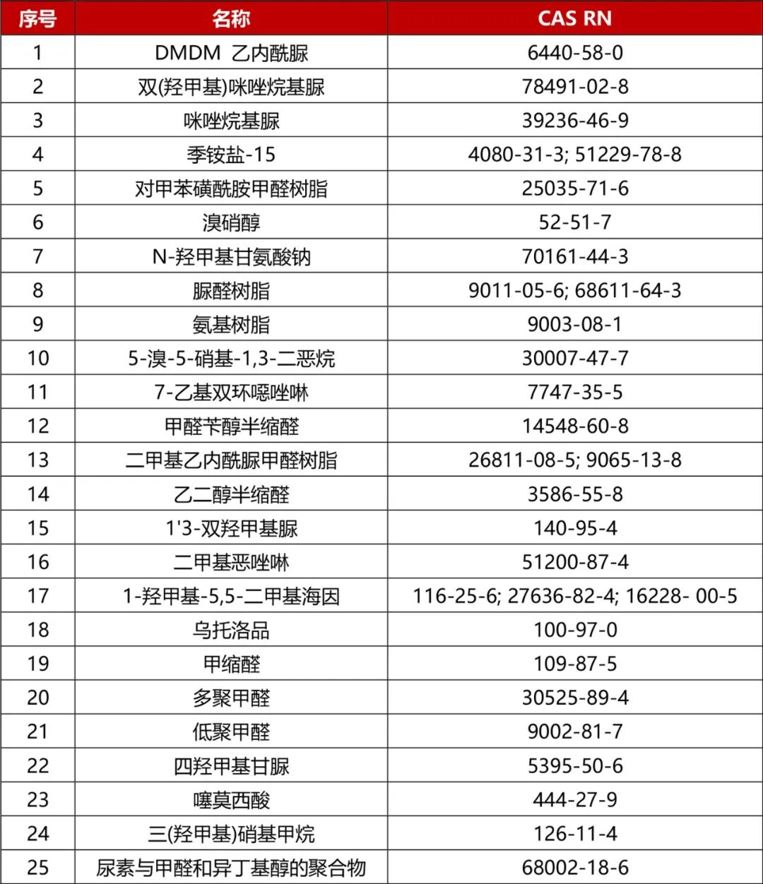 美国华盛顿州确定化妆品中禁止有意添加的甲醛释放体清单!